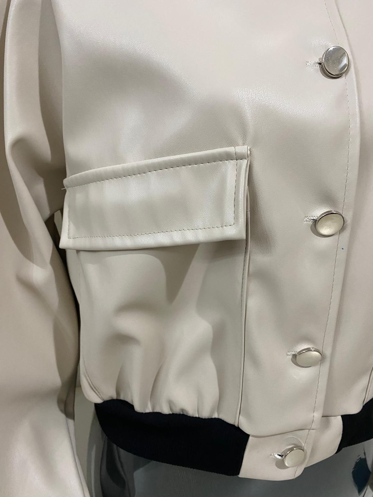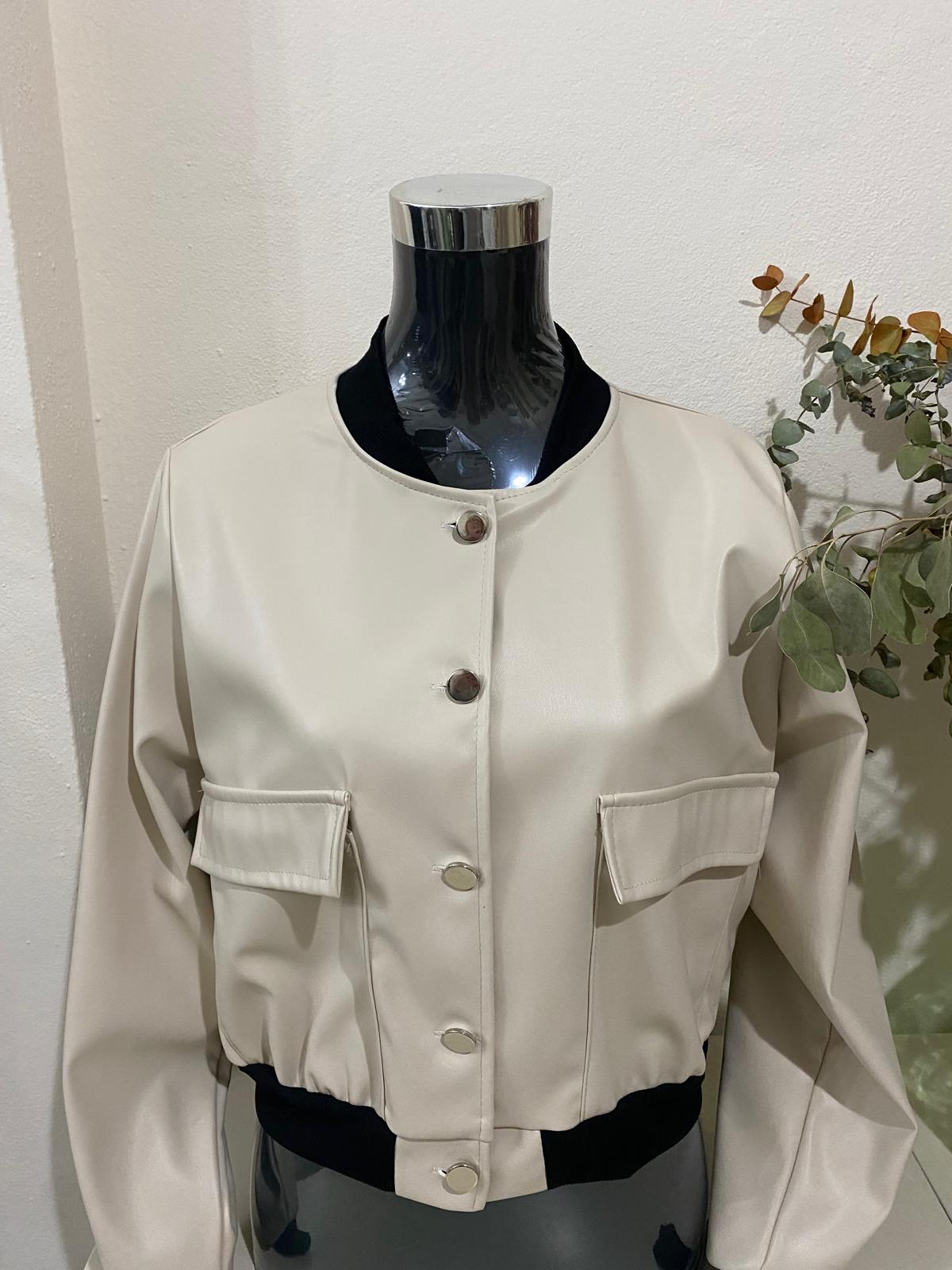 Bómber efecto piel en color beiges con detalles en color negro. Talla única.