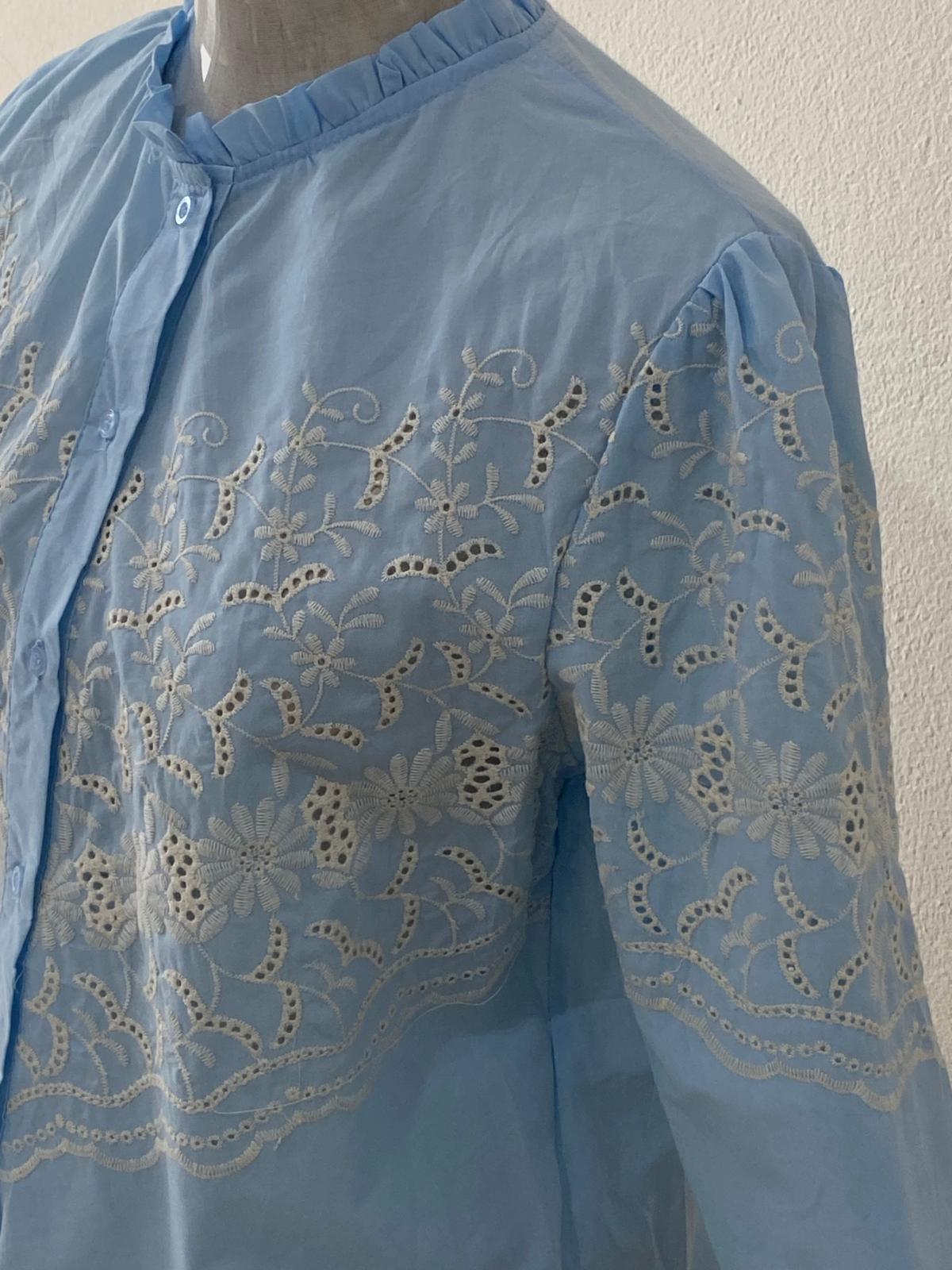 Camisa celeste de batista bordada