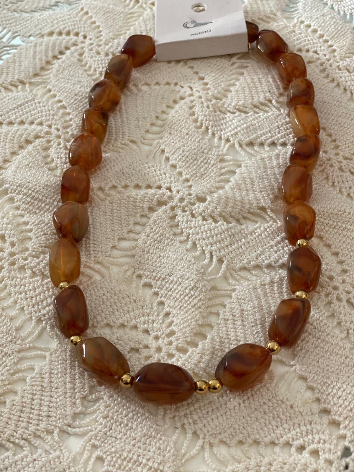 Collar de piedras desiguales en color carey .