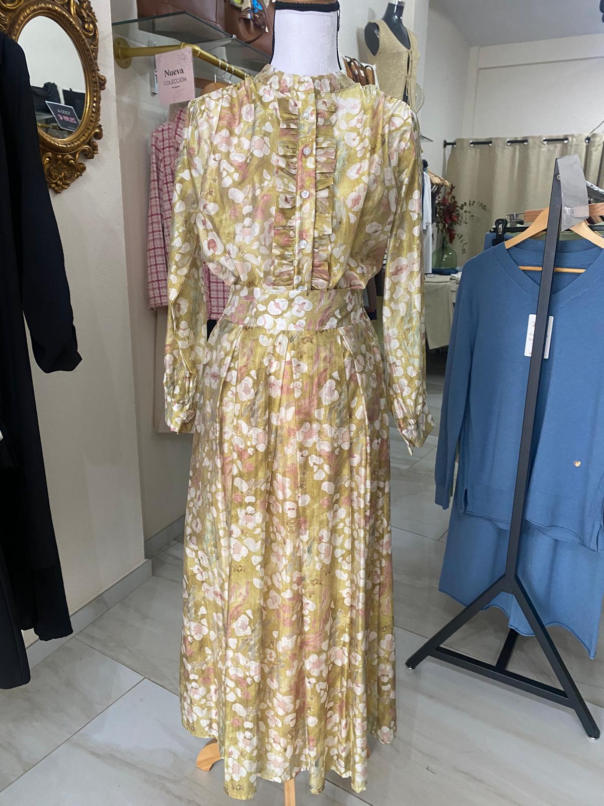 Falda de tejido sedoso con cinturilla alta y tablones en la parte delantera y gomita en la parte trasera de la falda. De talla única.
