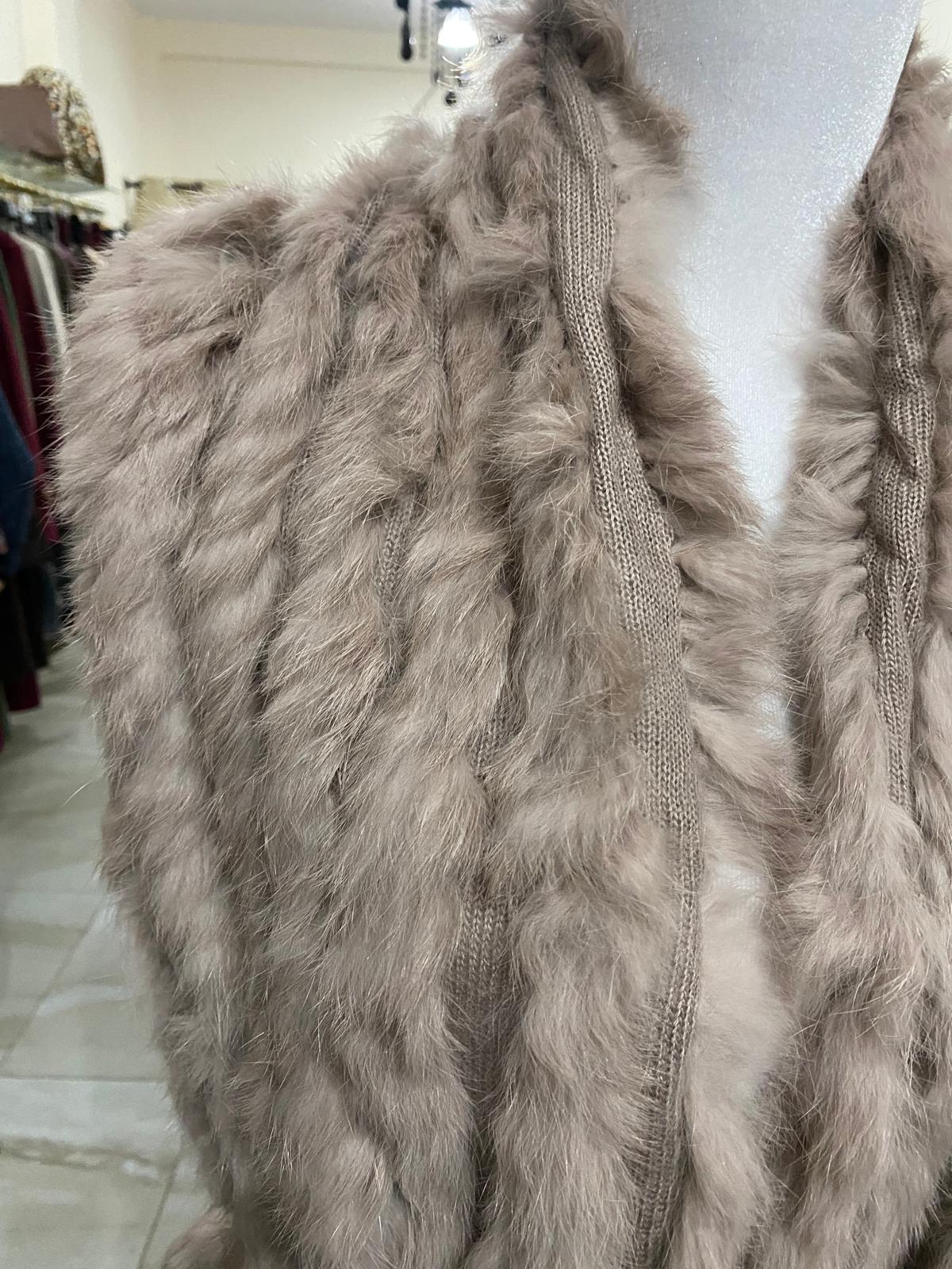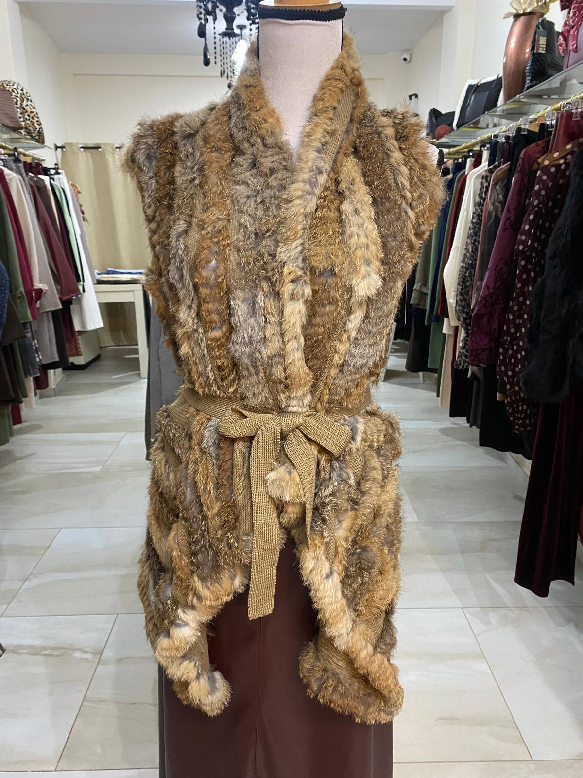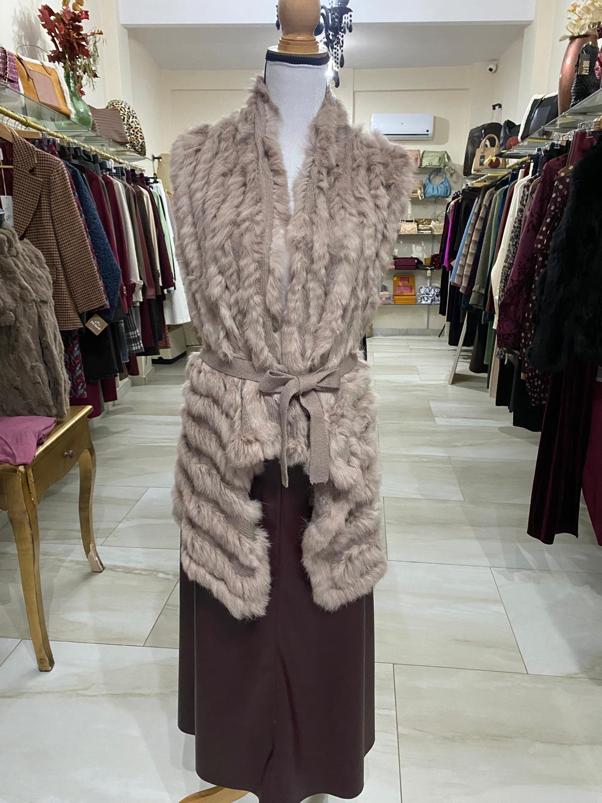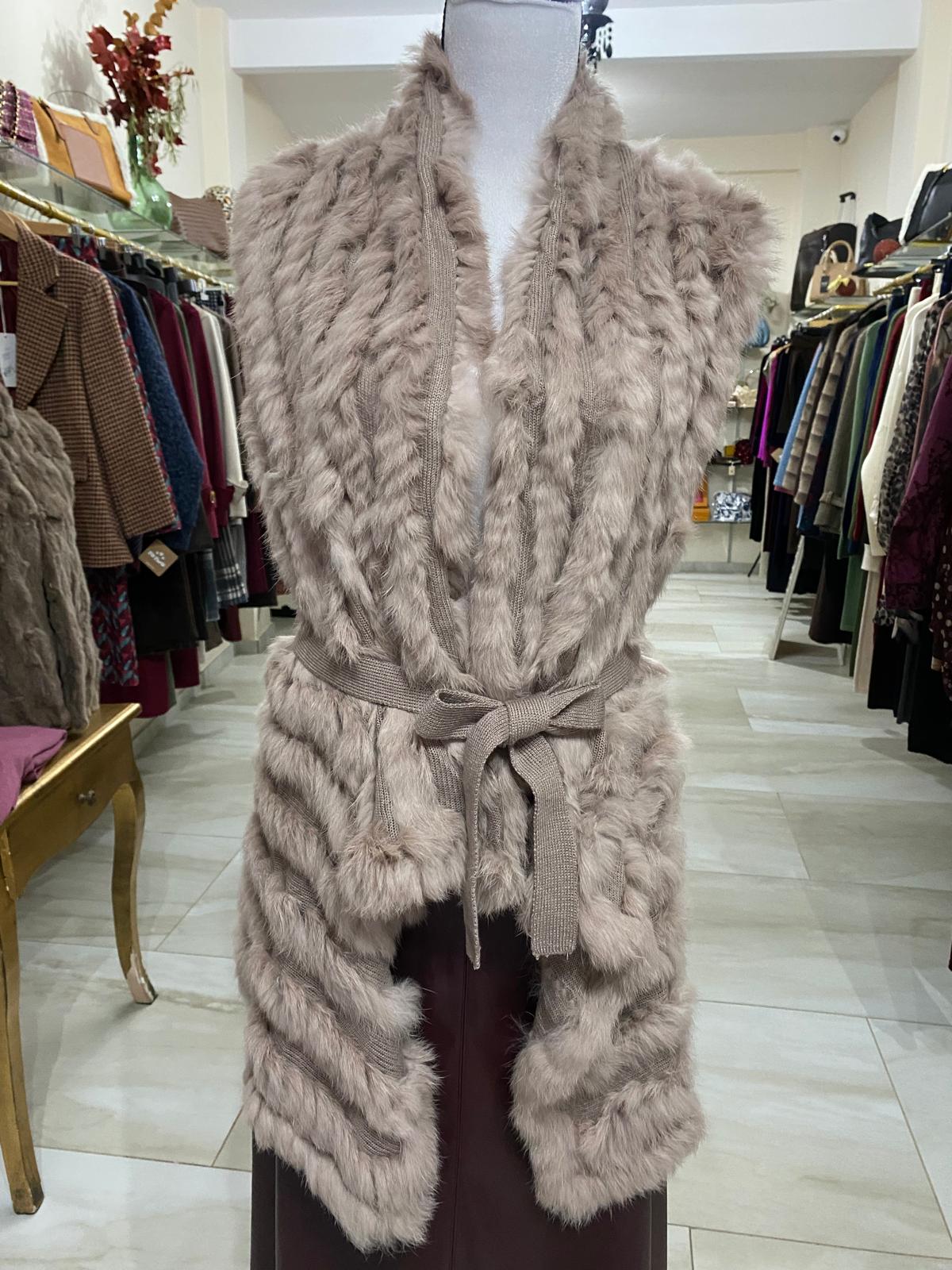 Rebeca de pelo de conejo en color clásico y en color nude, sin manga y de talla única.