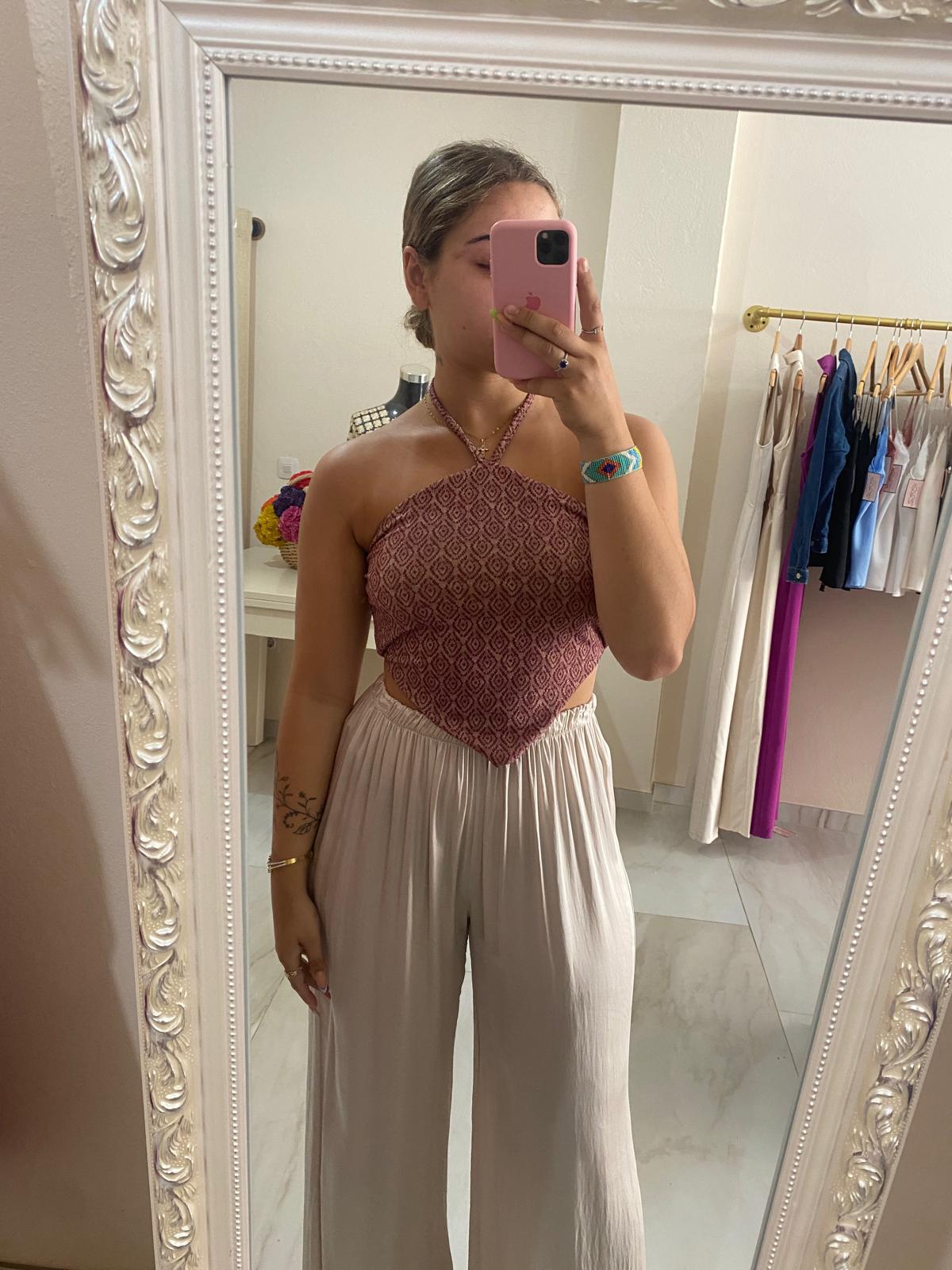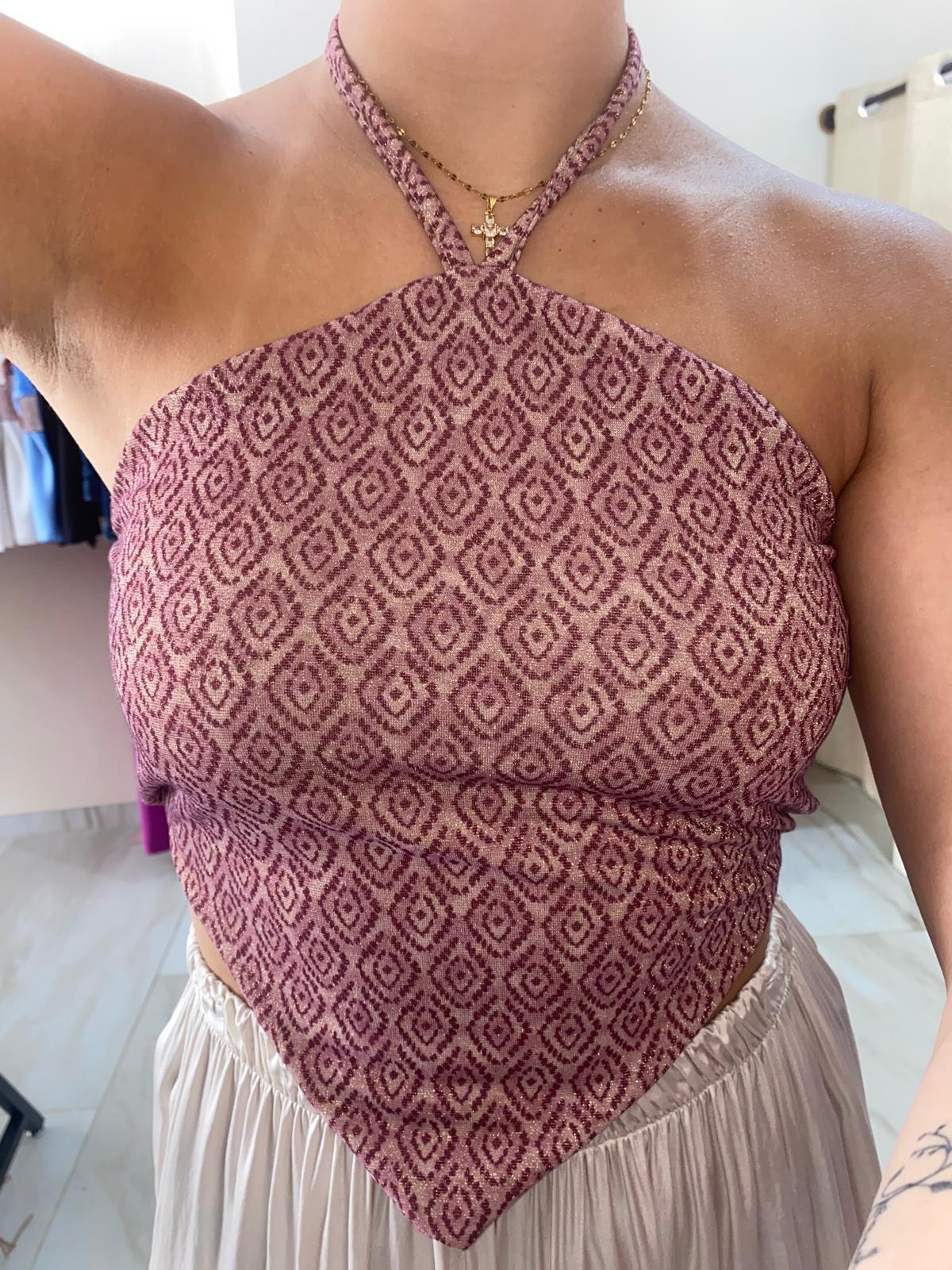 Top atado al cuello de tejido elástico. en color  burdeos. Talla única.