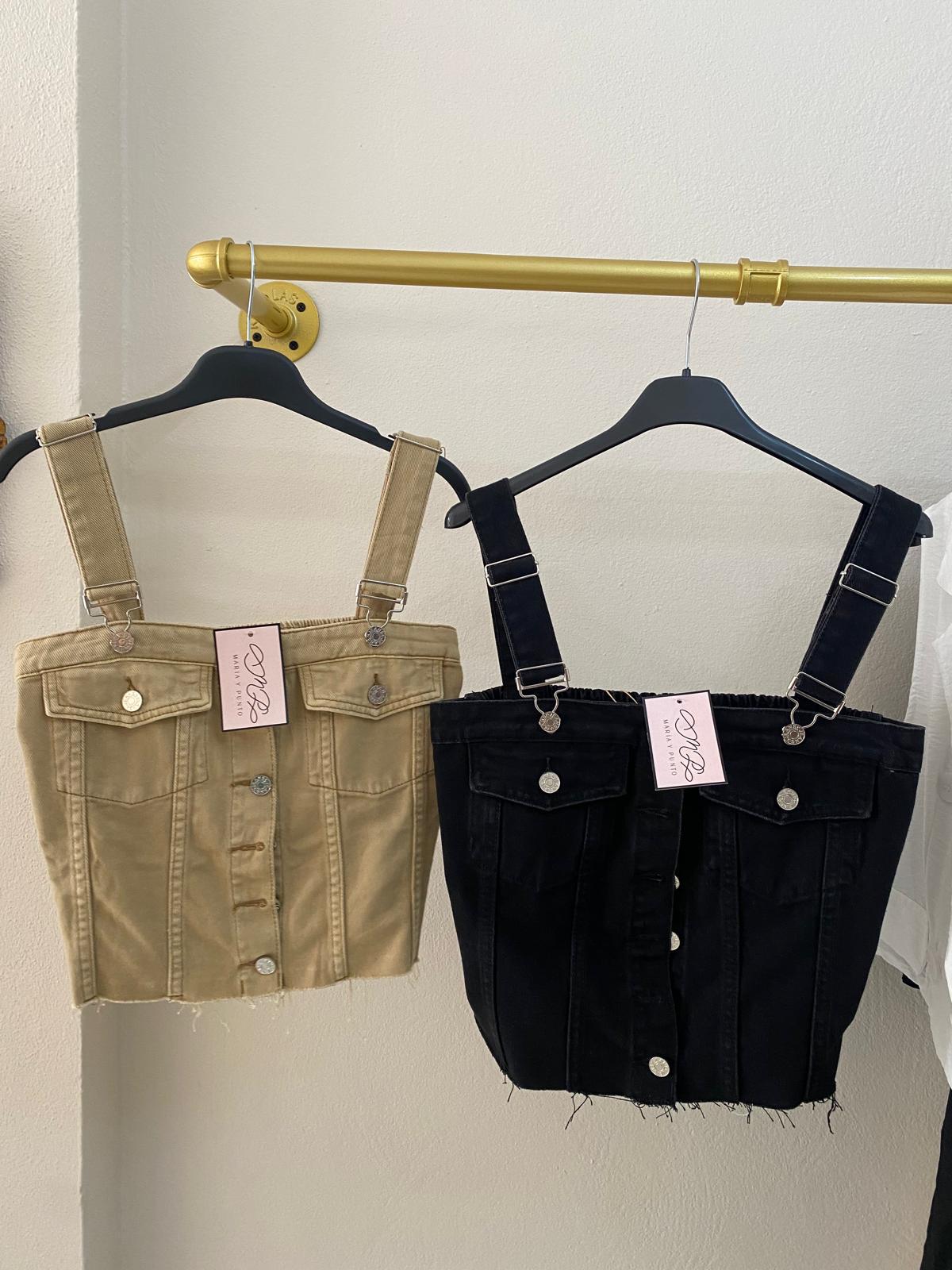 Top vaquero con elasticos de nido de abeja en la espalda. Talla única.